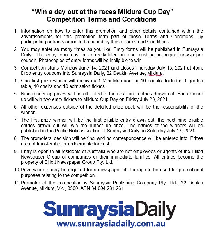 Mildura Cup Day 2021 Competition Terms and Conditions