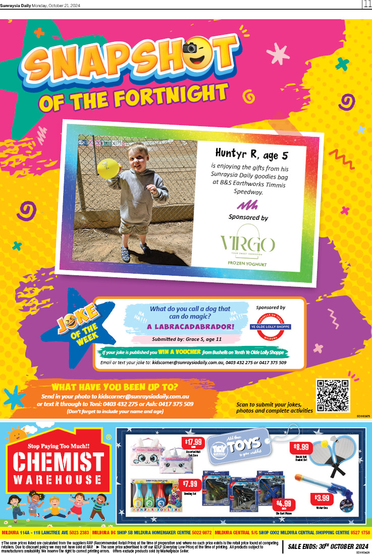Our libraries also have plenty of fun happening this week! The Red Cliffs Library is hosting a FREE after school LEGO program this term, where you can try your hand at one of their LEGO challenges, or let your imagination run wild with your own creation. Taking place every Tuesday from 3:45pm, you budding LEGO masters will have a blast! The Mildura Library also has a Baby Play session at 9:30 on Tuesday, and The Merbein Library will host a free Story Time on Tuesday from 10am, so there’s plenty of fun for everyone!