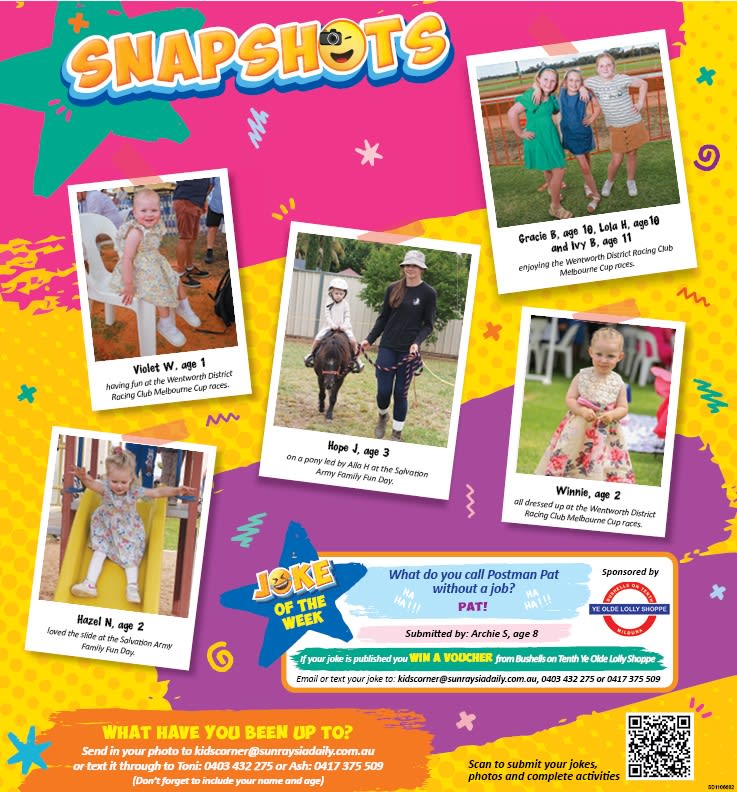 Finish up the week by heading out to the Red Cliffs Market for a day of family fun. With plenty of new activities for the kids each month, and a lovely shady playground to retreat to if the days continue to heat up, there’s a heap of joy to be had out in Red Cliffs. Don’t forget to take part in the Christmas colouring competition! Bring your pencils and collect your picture of Santa riding Big Lizzie from either FoodWorks or the Newsagency and return to the December market info tables or participating stores for your chance to win!